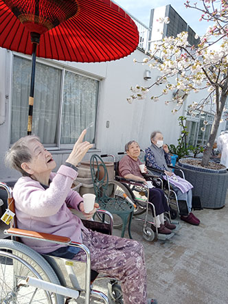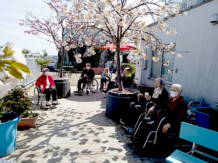 4月中旬、春の行事として屋上庭園にてお花見を開催いたしました。